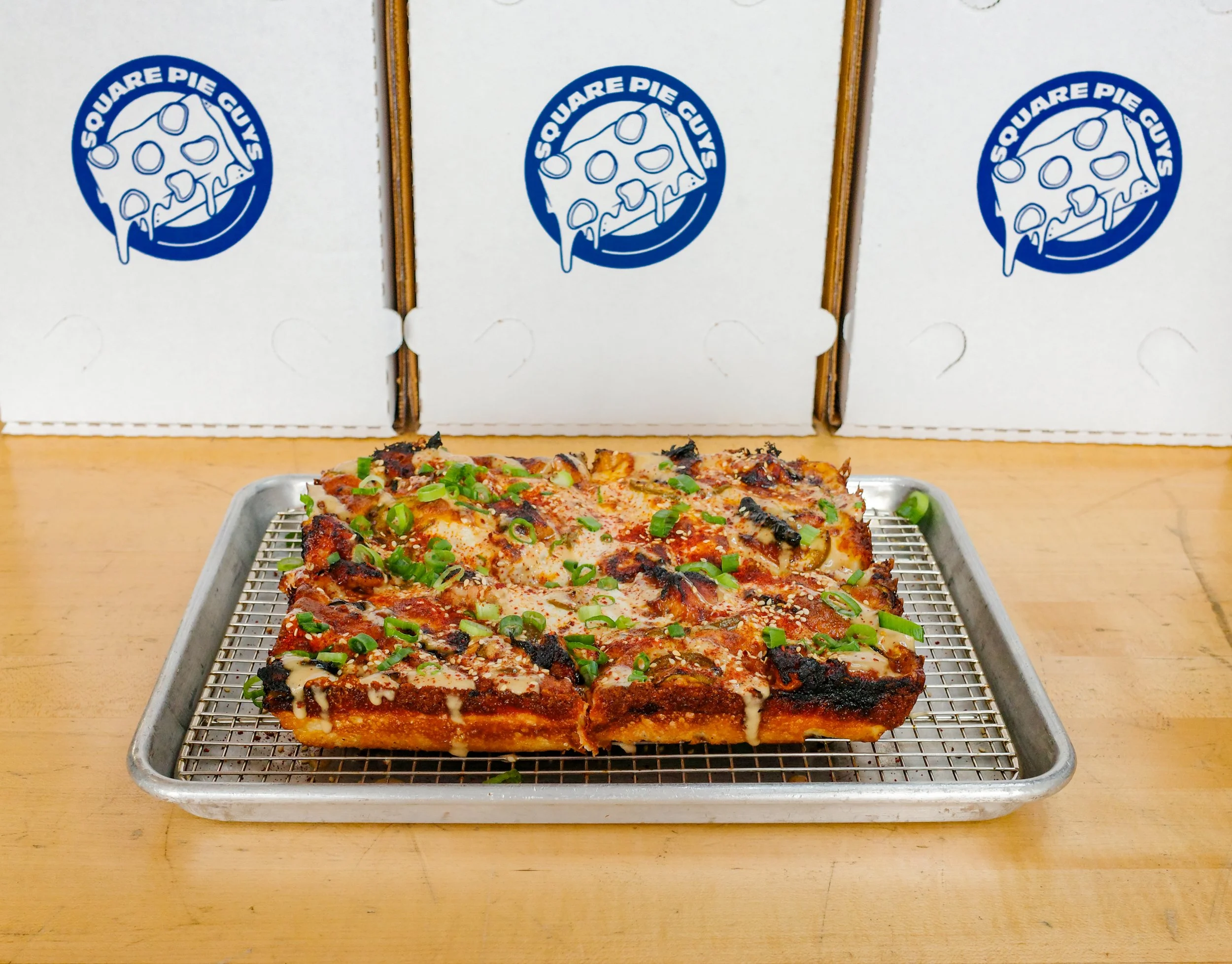 A certified fan favorite and true SPG staple, our collab with the Bay’s favorite foodie — GRUBWITMIKE — is back and better than ever: white sauce, pickled jalapeños, gochujang BBQ chicken, finished with Alabama white sauce, green onions, and a dusting of spicy sesame seeds.